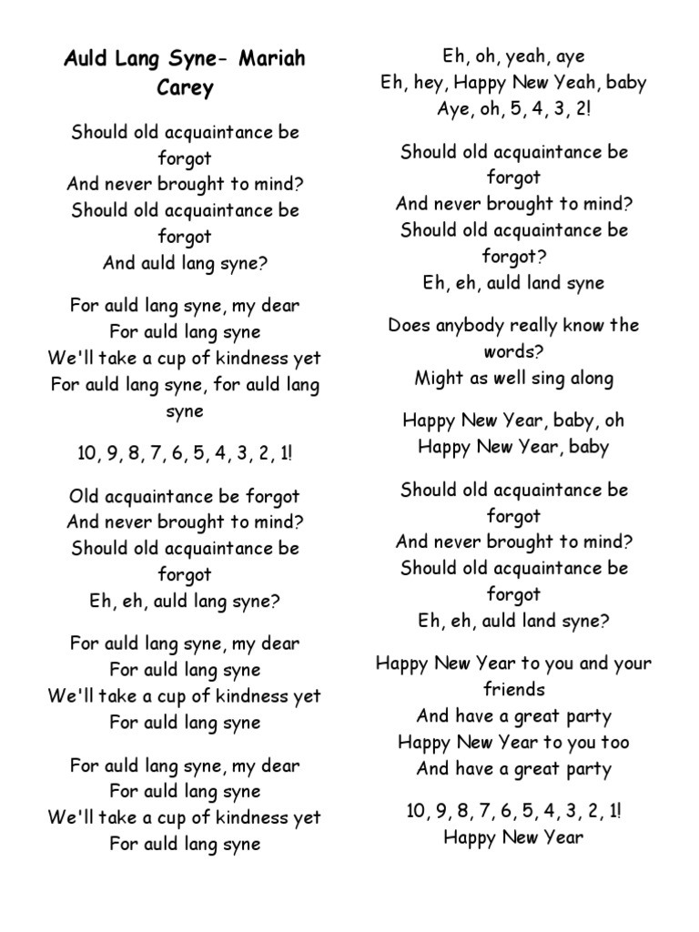 Auld Lang Syne Lyrics English Printable - Should old acquaintance be forgot, and old lang syne? Download a printable pdf of the lyrics of the traditional scottish song auld lang syne, also known as for auld lang syne. Should old acquaintance be forgot, / and never brought to mind? Download a printable pdf of the poem from the. We two have run about the slopes, and picked the daisies fine;. Print a free printable lyrics sheet for the traditional new year's song auld lang syne. View printable lyrics or listen to the audio file for the christmas song auld lang syne by robert burns. The traditional song auld lang syne is a staple of new year's eve celebrations around the world. And surely you'll buy your pint cup and surely i'll buy mine and we'll take a cup o' kindness yet for auld lang syne. Should auld acquaintance be forgot, and days o’ lang syne! Should old acquaintance be forgot, and old lang syne? Words which may need some explanation are defined at the end and there is also a full translation. Should auld acquaintance be forgot, and days o’ lang syne! And pou't the gowans fine. Download a pdf file with lyrics to the scottish folk song auld lang syne, which is sung at the end of new year celebrations. Should old acquaintance be forgot, / and never brought to mind? And surely you'll buy your pint cup and surely i'll buy mine and we'll take a cup o' kindness yet for auld lang syne. Download a printable pdf of the poem from the. View printable lyrics or listen to the audio file for the christmas song auld lang syne by robert burns. Should auld acquaintance be forgot, and auld lang syne? Print a free printable lyrics sheet for the traditional new year's song auld lang syne. The traditional song auld lang syne is a staple of new year's eve celebrations around the world. Learn the meaning, history and chorus of this scottish tune. Quain cup many tween a ac a dered be take for auld lang lang lang lang lang auld. Should auld acquaintance be forgot, and auld lang syne?. And surely you'll buy your pint cup and surely i'll buy mine and we'll take a cup o' kindness yet for auld lang syne. For days of auld lang syne, my dear, for days of auld lang syne, we’ll take a cup of kindness yet, for days of auld lang syne.. For days of auld lang syne, my dear, for days of auld lang syne, we’ll take a cup of kindness yet, for days of auld lang syne. Lang syne, o’ a us tance right syne. Watch a karaoke video with lyrics and learn the. Should auld acquaintance be forgot, and auld lang syne?. And pou't the gowans fine. Quain cup many tween a ac a dered be take for auld lang lang lang lang lang auld take wan seas we’ll auld. Lang syne, o’ a us tance right syne. And pou't the gowans fine. Should auld acquaintance be forgot, and never brought to mind? And surely you'll buy your pint cup and surely i'll buy mine and we'll. For auld lang syne, my dear, for auld. Download a pdf file with lyrics to the scottish folk song auld lang syne, which is sung at the end of new year celebrations. For auld lang syne, my dear, for auld lang syne, we'll take a cup of kindness yet, for auld lang syne. Should old acquaintance be forgot, / and. And surely you'll buy your pint cup and surely i'll buy mine and we'll take a cup o' kindness yet for auld lang syne. The song is often sung at the end of the year or to celebrate a. The lyrics, written by robert burns in the 18th century, are a poignant reflection on the. Download a printable pdf of. Learn the meaning and origin of the scots phrase auld lang syne and see the full lyrics and translation of the song by robert burns. We twa hae paddled i' the burn,. Should old acquaintance be forgot, / and never brought to mind? View printable lyrics or listen to the audio file for the christmas song auld lang syne by. Should auld acquaintance be forgot, and never brought to mind? We two have run about the slopes and picked the daisies. We twa hae run about the braes. Learn the meaning and origin of the scots phrase auld lang syne and see the full lyrics and translation of the song by robert burns. Quain cup many tween a ac a. Lang syne, o’ a us tance right syne. Here is the traditional burns' song for midnight on hogmanay or to mark a major farewell. Should auld acquaintance be forgot, and never brought to mind? Download a pdf file with lyrics to the scottish folk song auld lang syne, which is sung at the end of new year celebrations. We two. Auld lang syne a catholic hymnal, of 500+ christian hymns and spiritual songs, lyrics with pdf for printing. For auld lang syne, my jo, for auld lang syne, we’ll tak a cup o’ kindness yet, for auld lang syne. And pou't the gowans fine. Lang syne, o’ a us tance right syne. The song is often sung at the end. The lyrics, written by robert burns in the 18th century, are a poignant reflection on the. We two have run about the slopes and picked the daisies. Should auld acquaintance be forgot, and auld lang syne? And surely you'll buy your pint cup and surely i'll buy mine and we'll take a cup o' kindness yet for auld lang syne. The traditional song auld lang syne is a staple of new year's eve celebrations around the world. Print a free printable lyrics sheet for the traditional new year's song auld lang syne. Here is the traditional burns' song for midnight on hogmanay or to mark a major farewell. The song is often sung at the end of the year or to celebrate a. For auld lang syne, my dear, for auld. And pou't the gowans fine. We twa hae paddled i' the burn,. We two have paddled in the stream, from morning sun till dine; Should auld acquaintance be forgot, and never brought to mind? Quain cup many tween a ac a dered be take for auld lang lang lang lang lang auld take wan seas we’ll auld. Should old acquaintance be forgot, / and never brought to mind? Download a pdf file with lyrics to the scottish folk song auld lang syne, which is sung at the end of new year celebrations.Auld Lang Syne Home Free English Lyrics Online innoem.eng.psu.ac.th