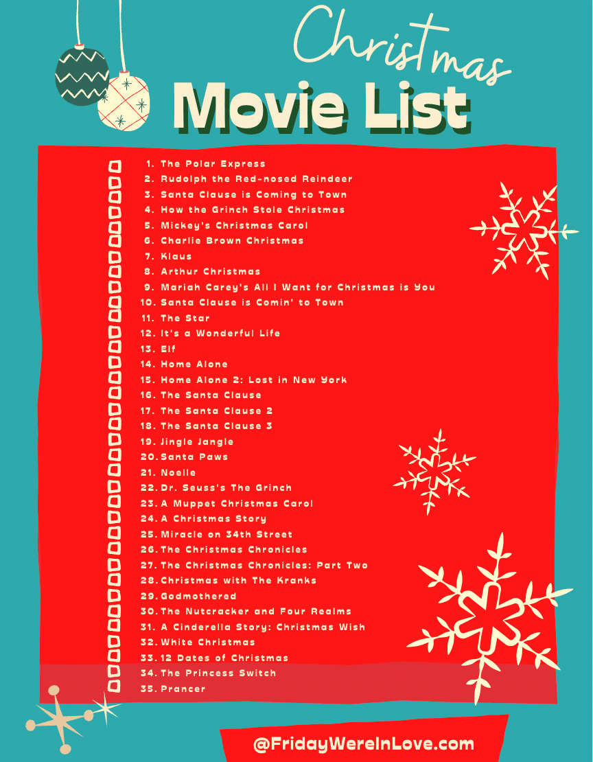 Best Family Christmas Movies + Christmas Movie List Printable Friday