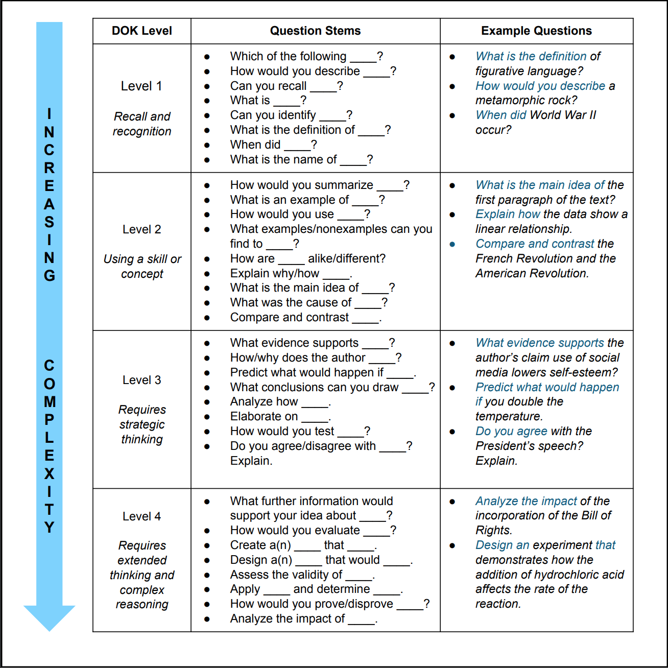 DOK Question Stems Question stems, Dok question stems, Teaching